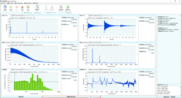 VLAB动态信号采集与分析软件是专业的振动、声学数据采集分析软件支持实时以多种可选的方式显示数据值。按照设置的方式进行数据处理并显示数据处理结果。显示数据的同时进行统计数据分析并显示。支持实时记录数据,并支持对历史数据进行多种形式的查看、分析,并包含丰富的分析结果输出功能。